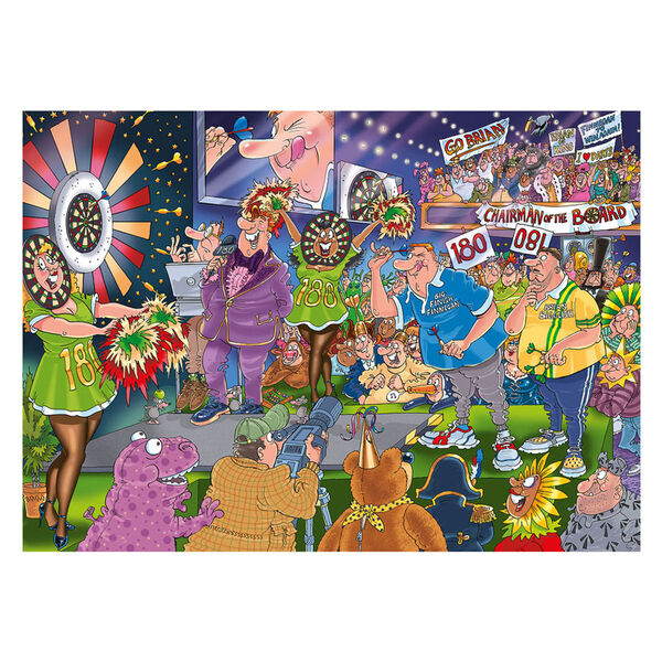 Die Abwurflinie ist bereit, die Menge tobt, die Spannung ist greifbar! Es ist das große Finale der Darts-Meisterschaft. Zwei Schwergewichte kämpfen um den Sieg. Kostümierte Spieler mischen sich unter die Zuschauer, Cheerleader feuern die Spieler auf der Bühne an, und Fernsehteams halten jeden Moment für Millionen von Zuschauern zu Hause fest. Wird der Wurf gelingen oder verfehlt der Dart sein Ziel? Nutze deine Fantasie und die Hinweise, um herauszufinden, was passieren wird.